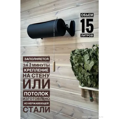 ОБЪЁМ: 15 Л Выбор обливного зависит еще и от объема. В процессе разработки нашего обливного устройства «КОЛОБОК» мы провели многочисленные тесты и сравнения различных объемов. В итоге мы вычислили оптимальный объем холодной воды для окатыванияпосле парилки!
